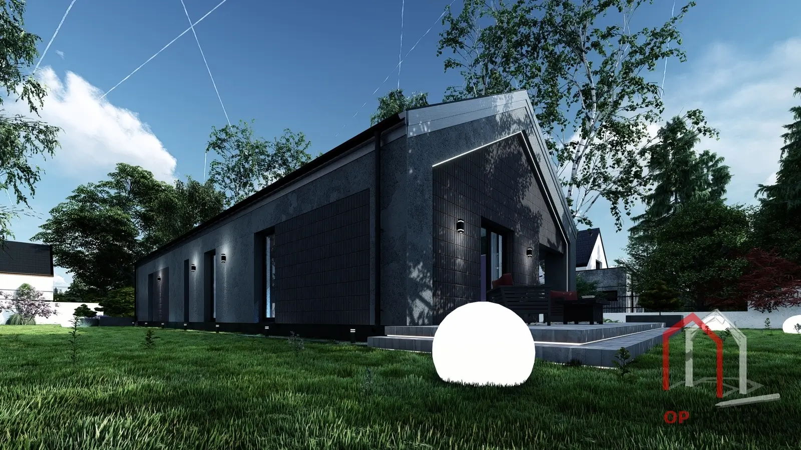 Wariant z czarnym tynkiem i czarną cegłą – nowoczesna, elegancka kompozycja o zdecydowanym wyrazie.