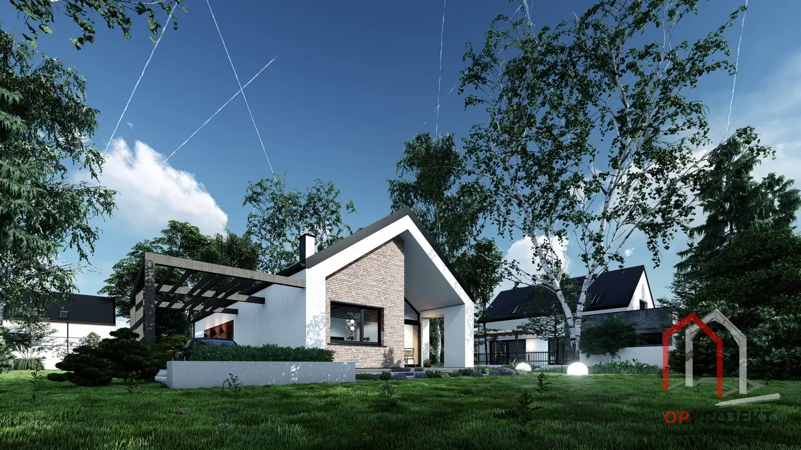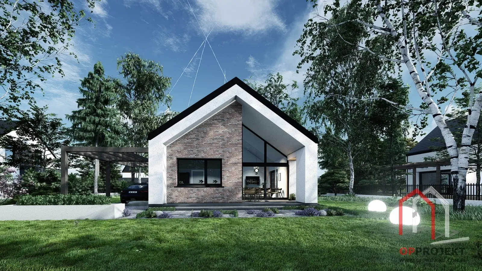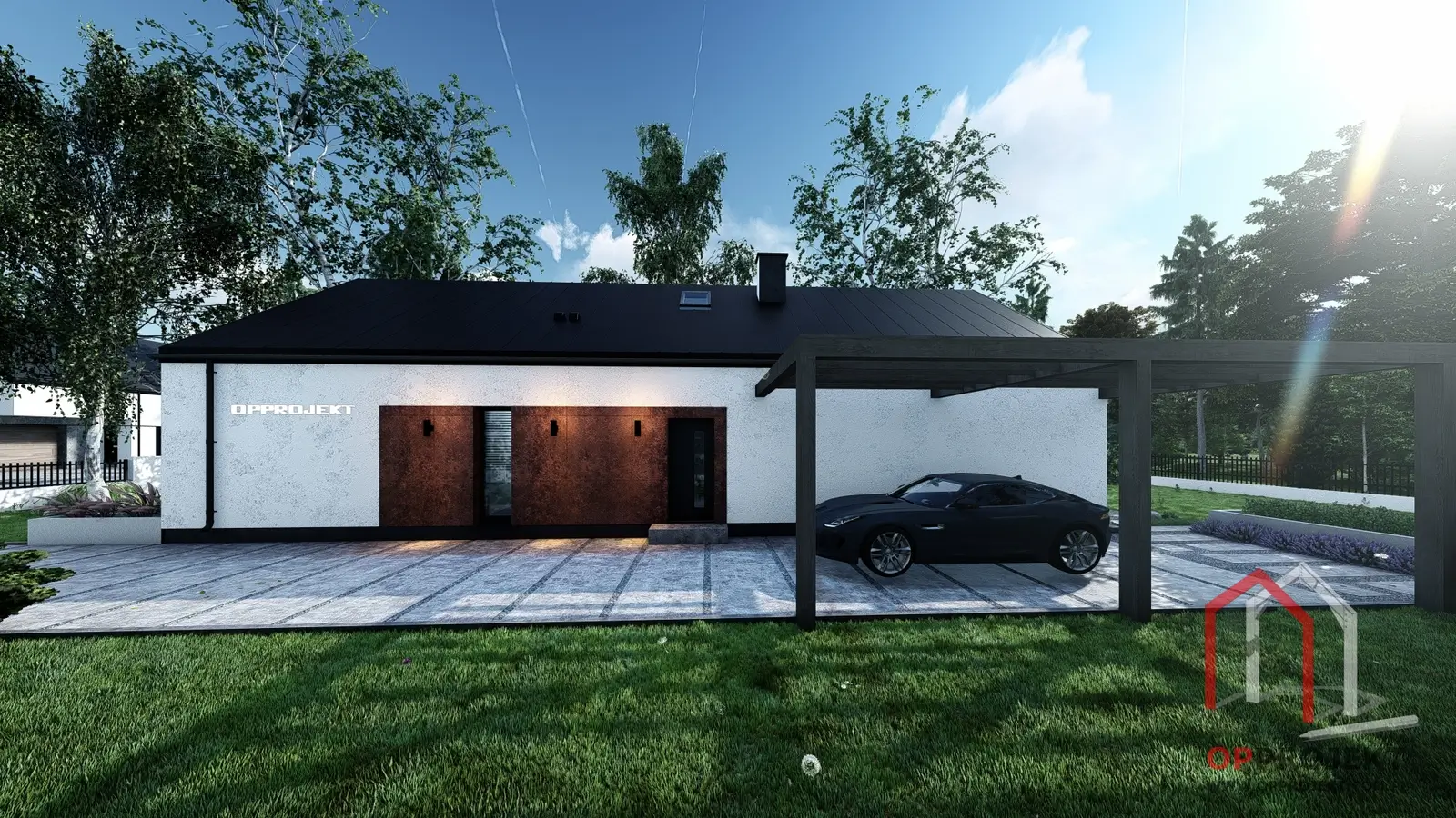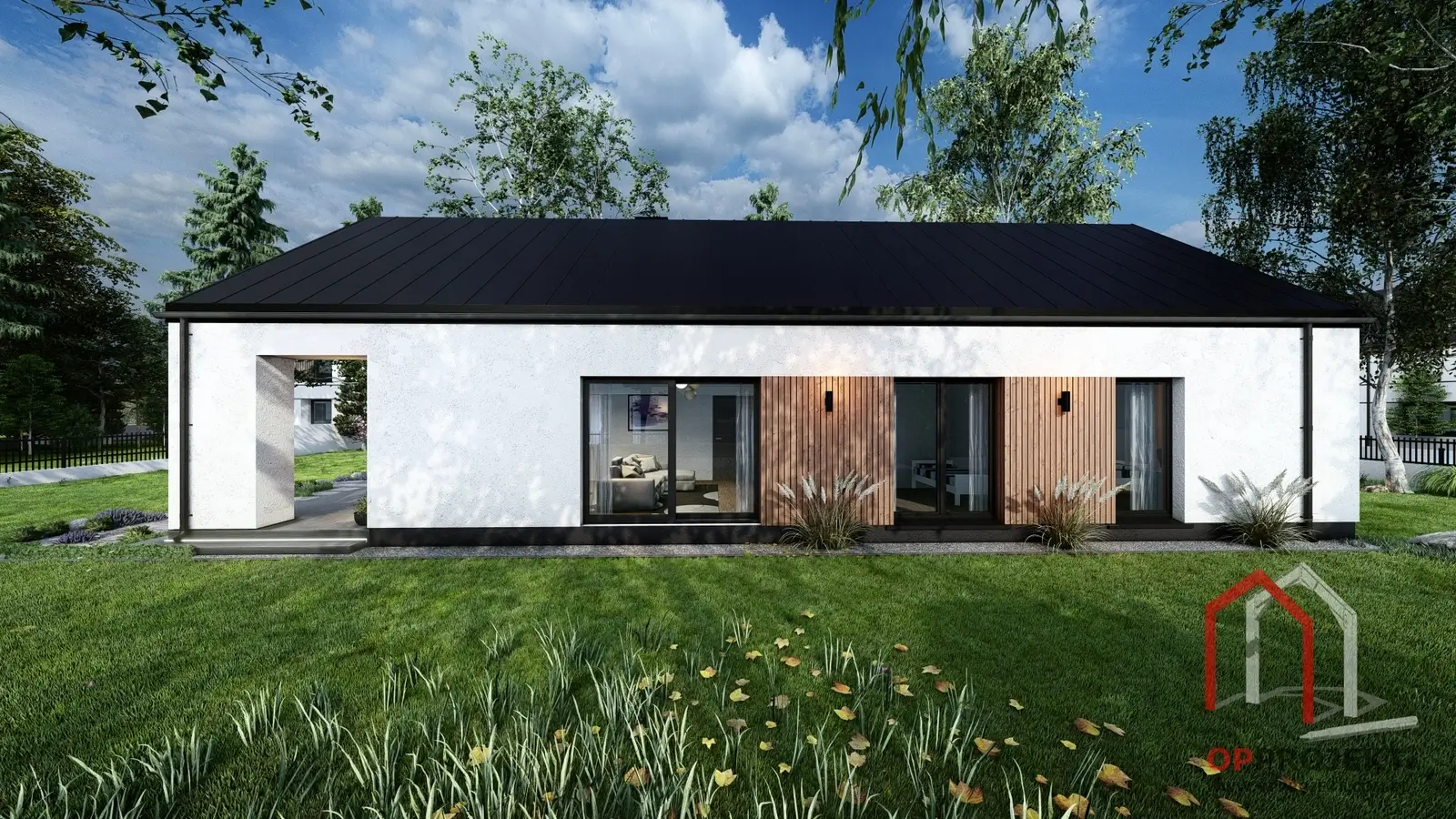 KONSTRUKCJA DACHU: prefabrykowana kratownica drewniana, nad częścią salonową dach jętkowy, pokrycie dachówką ceramiczną lub cementową