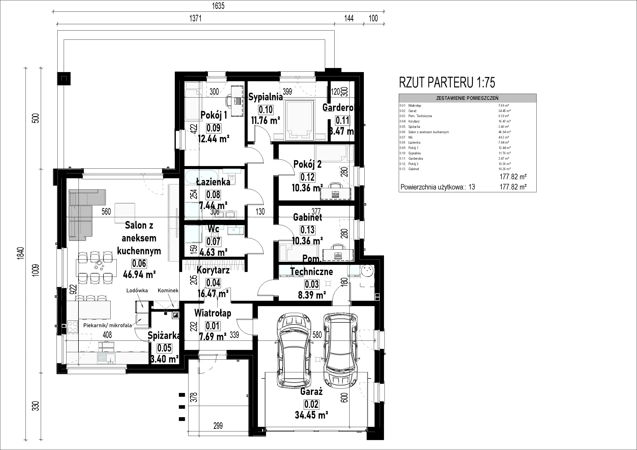 0.06 SALON Z ANEKSEM KUCHENNYM 46,94 m2