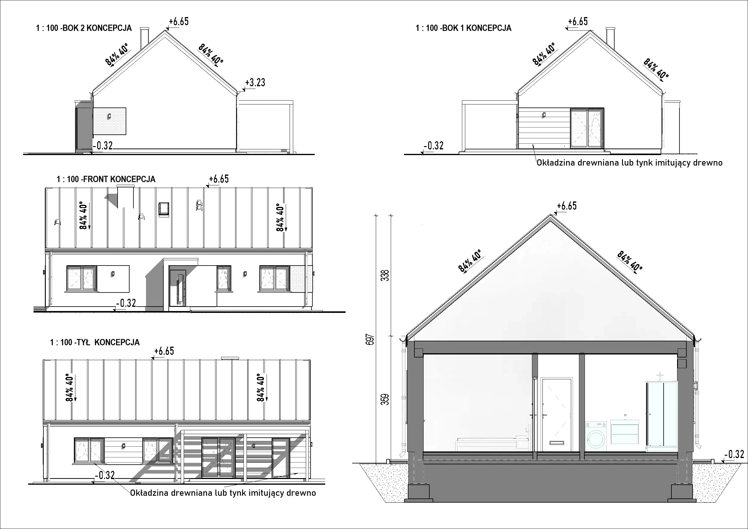 ELEWACJA: tynk, deska elewacyjna, cegła