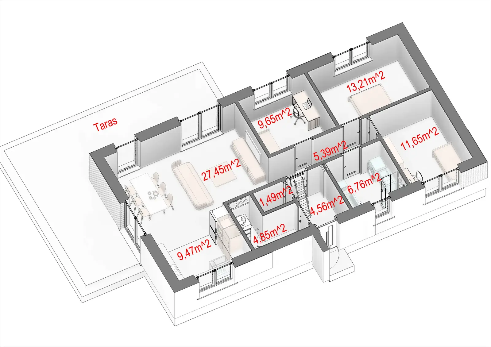 0.08 SALON+JADALNIA 27,45 m2