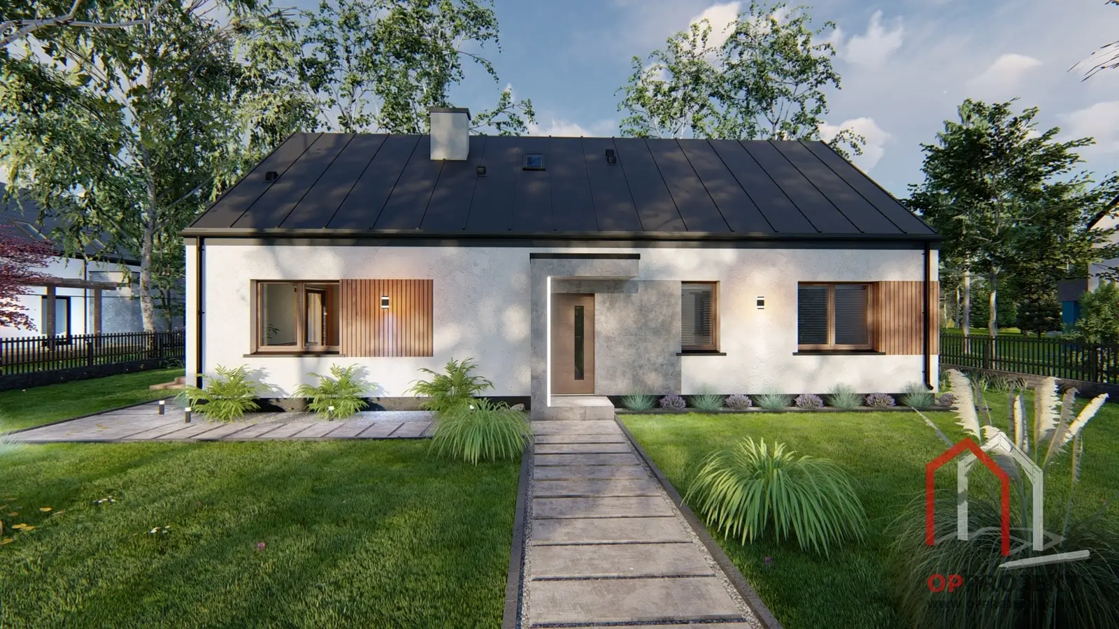 KONSTRUKCJA DACHU: prefabrykowana kratownica drewniana, pokrycie dachówką ceramiczną lub cementową