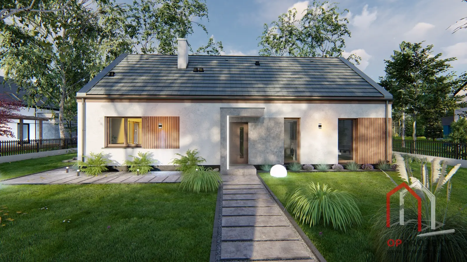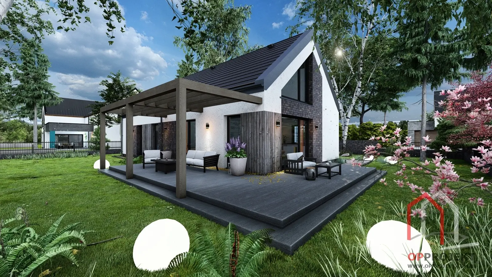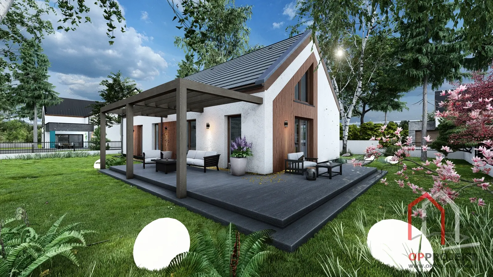 KONSTRUKCJA DACHU: prefabrykowana kratownica drewniana, pokrycie dachówką ceramiczną lub cementową