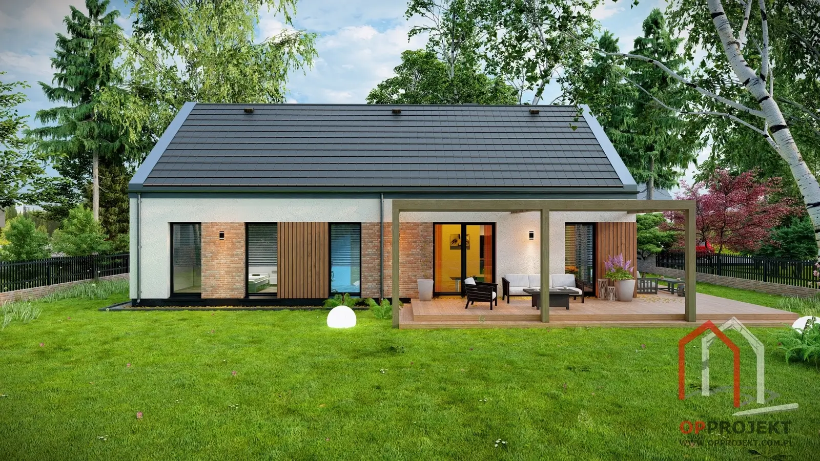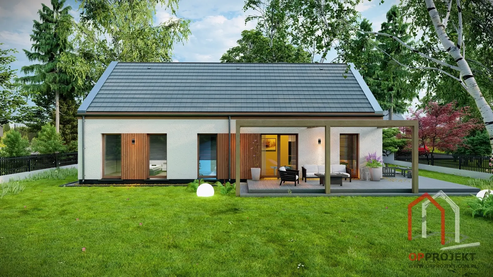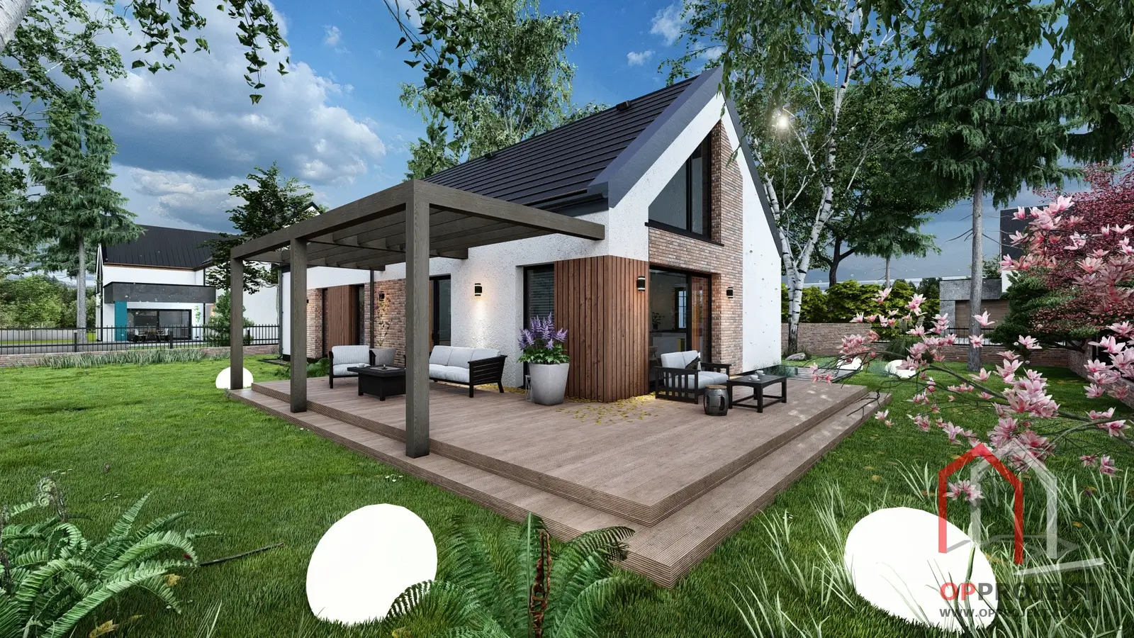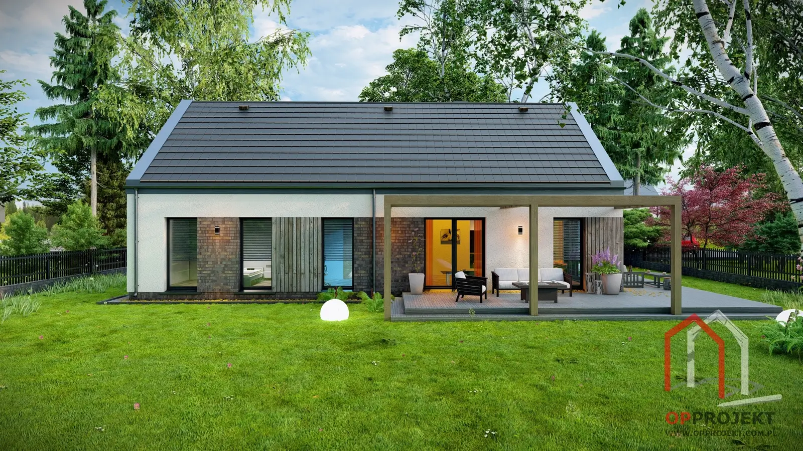 KONSTRUKCJA DACHU: prefabrykowana kratownica drewniana, pokrycie dachówką ceramiczną lub cementową