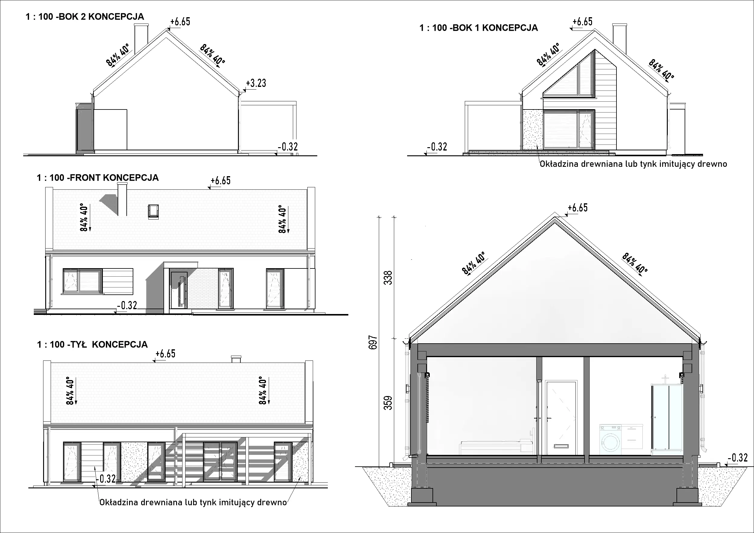 ELEWACJA: tynk, deska elewacyjna, cegła